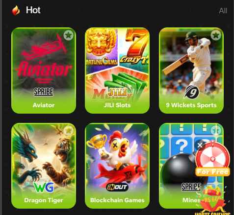 All game categories are well-organized, making it simple to switch between casino, sports, and lottery games.