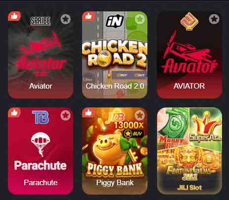 | Slots | Dragon Tiger, Vortex Chicken Road, Plinko, JILI, Piggy Bank, Fortune Game, Mega Wheel, Zeus, Dragon Fishing Slot |