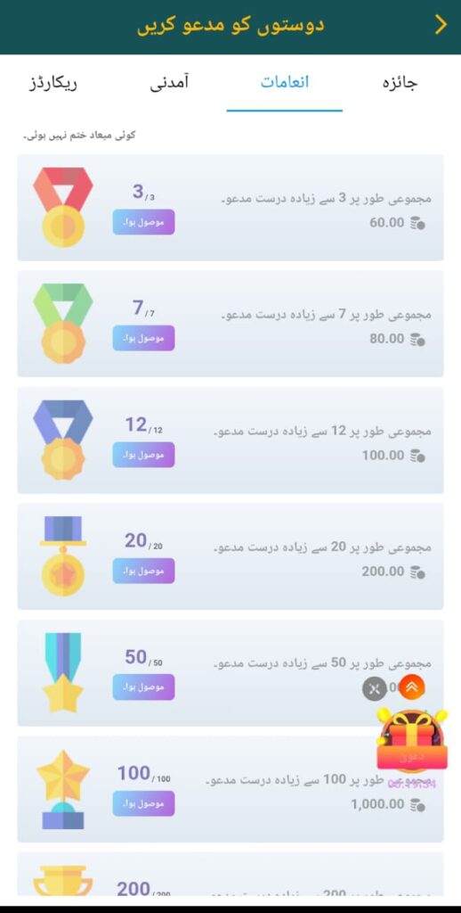 | Number of Valid Invitations | Bonus Reward (PKR) |
