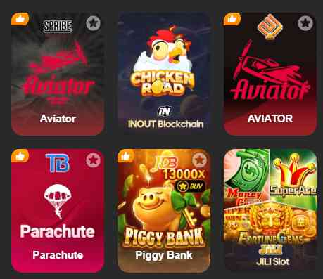| Casino Games | Aviator, Dragon Tiger, Vortex Chicken Road, Plinko, JILI, Piggy Bank, Fortune Game, Gogo Race |